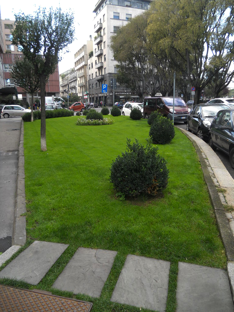 L’oggetto della richiesta di sponsorizzazione è un’ aiuola adibita a verde che occupa un’area di circa 200 mq suddivisa in due porzioni situata nell’angolo sud di Piazza Luigi di Savoia, all’angolo tra Viale Andrea Doria, Via Le Petit e Via Scarlatti, sul marciapiede di fronte al parcheggio taxi della Stazione Centrale. La superficie sarà racchiusa da un cordolo in granito. All’interno del perimetro è stato previsto principalmente un tessuto seminato uniforme prato all’ inglese, mentre per delimitare le diverse essenze sono stati utilizzati dei mattoni in tufo e delimitano le aree interne all’ aiuola. La porzione di aiuola verso Piazza Luigi Savoia a sud-ovest, verso Via Scarlatti, avrà: un tappeto di erba mantenuta all’ingresso, arbusti cespugliosi sempreverde,denominati Buxuspiante sempreverdi della famiglia delle Violaceae e della famiglia delle Begoniaceae, La porzione verso Piazza Luigi Savoia avrà anche un Buxus di 100 cm di diametro, piantato su Lapillo vulcanico, circondato da Viole nella stagione invernale e Begonie nella stagione estiva, con un perimetro in mattoni in tufo; è prevista anche la piantumazione di una pianta ornamentale della specie Hibiscus, resistente al freddo, a foglie decidue, con fioritura estiva con fiori colorati, coltivata ad alberello, fino ad un altezza di 300 cm, con fusto di diametro di 30 cm e chioma di 150 cm di diametro.