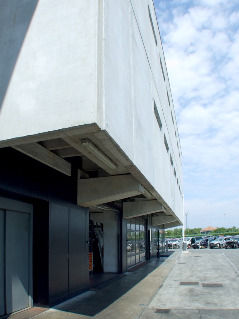 Nell’area industriale localizzata sul confine orientale della città di Cinisello Balsamo, per un azienda leader nel settore dell’autodemolizioni nata nel 1983, che si occupa della gestione di bonifica, smontaggio e trattamento dei veicoli motorizzati, è stato realizzato un complesso di edifici industriali prefabbricati con finiture in pannelli in cemento armato faccia vista.
